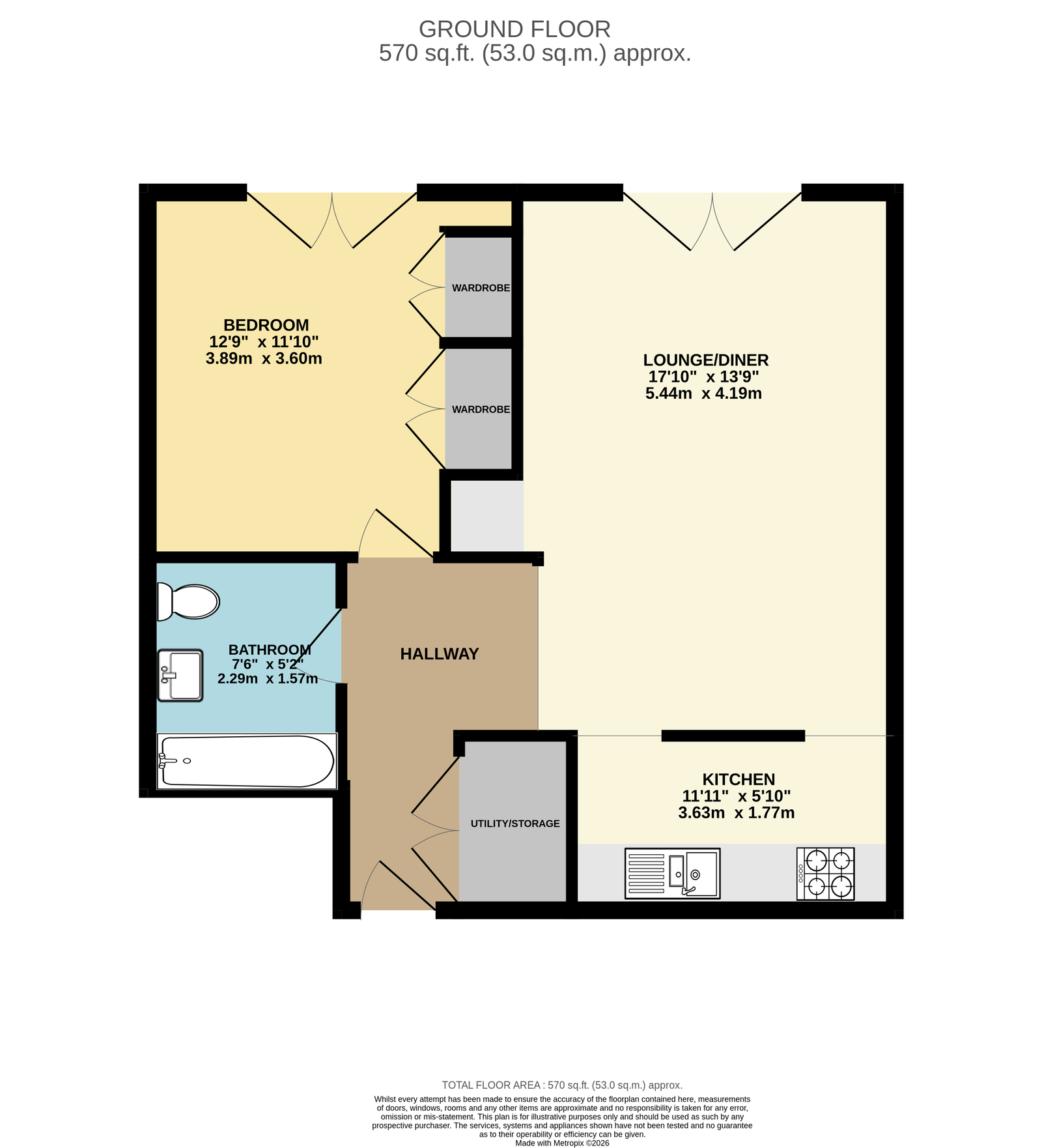 Approached through a wooden front door leading to: