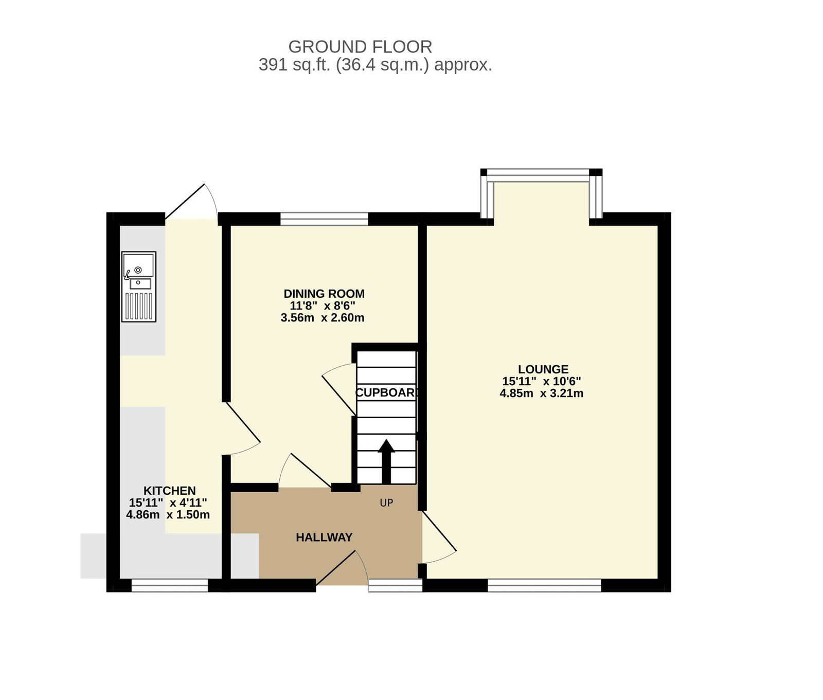 Mains water, electricity and mains drainage, mobile coverage likely, broadband connection FTTP, the property has no heating and no double glazing apart from the kitchen door.