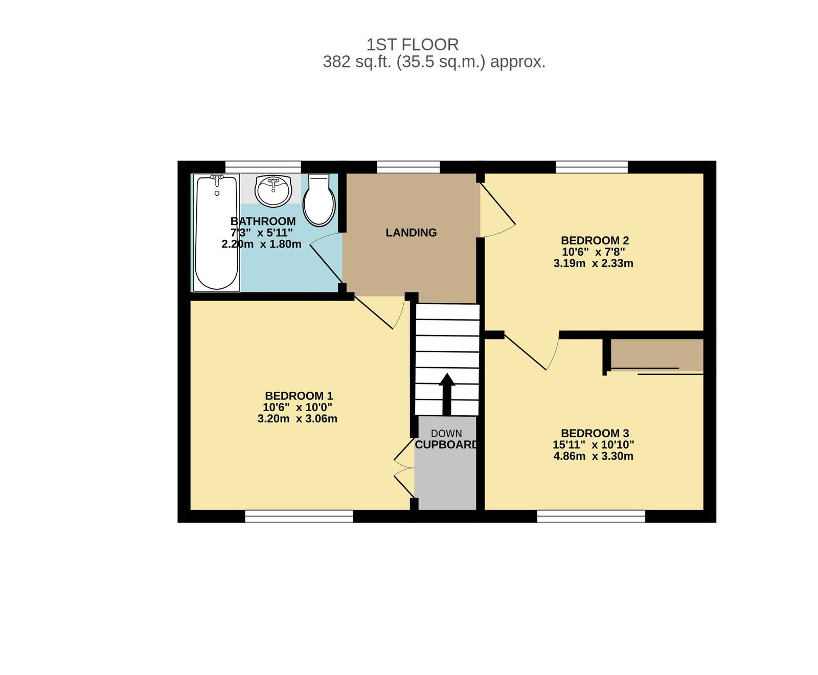Matching suite comprising panelled bath with Mira electric shower over, low level w.c, wash hand basin with storage under, heated towel rail, window to rear.