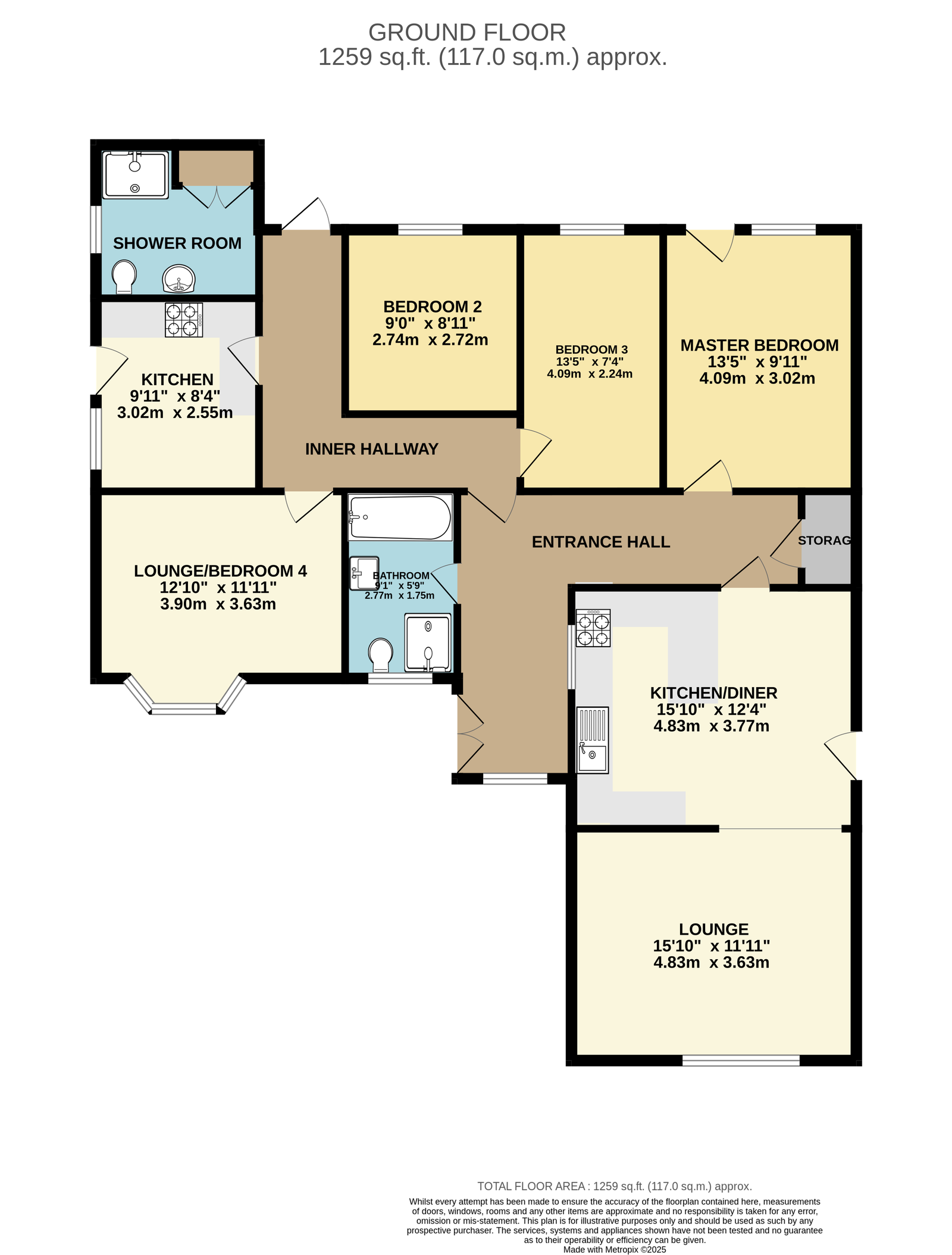 Approached through a PVCu double-glazed front door to: