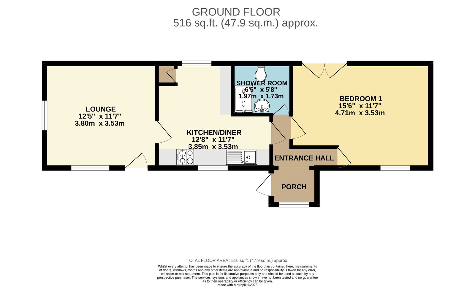A one (originally two) bedroom detached park home, situated in a quiet cul-de-sac in this fully residential park, offering easy access to local amenities. The living accommodation, which is well presented throughout in tasteful, neutral colours comprises, an entrance porch, entrance hall, lounge, modern fitted kitchen/diner, large double bedroom (as previously mentioned it was originally two bedrooms) and a shower room.